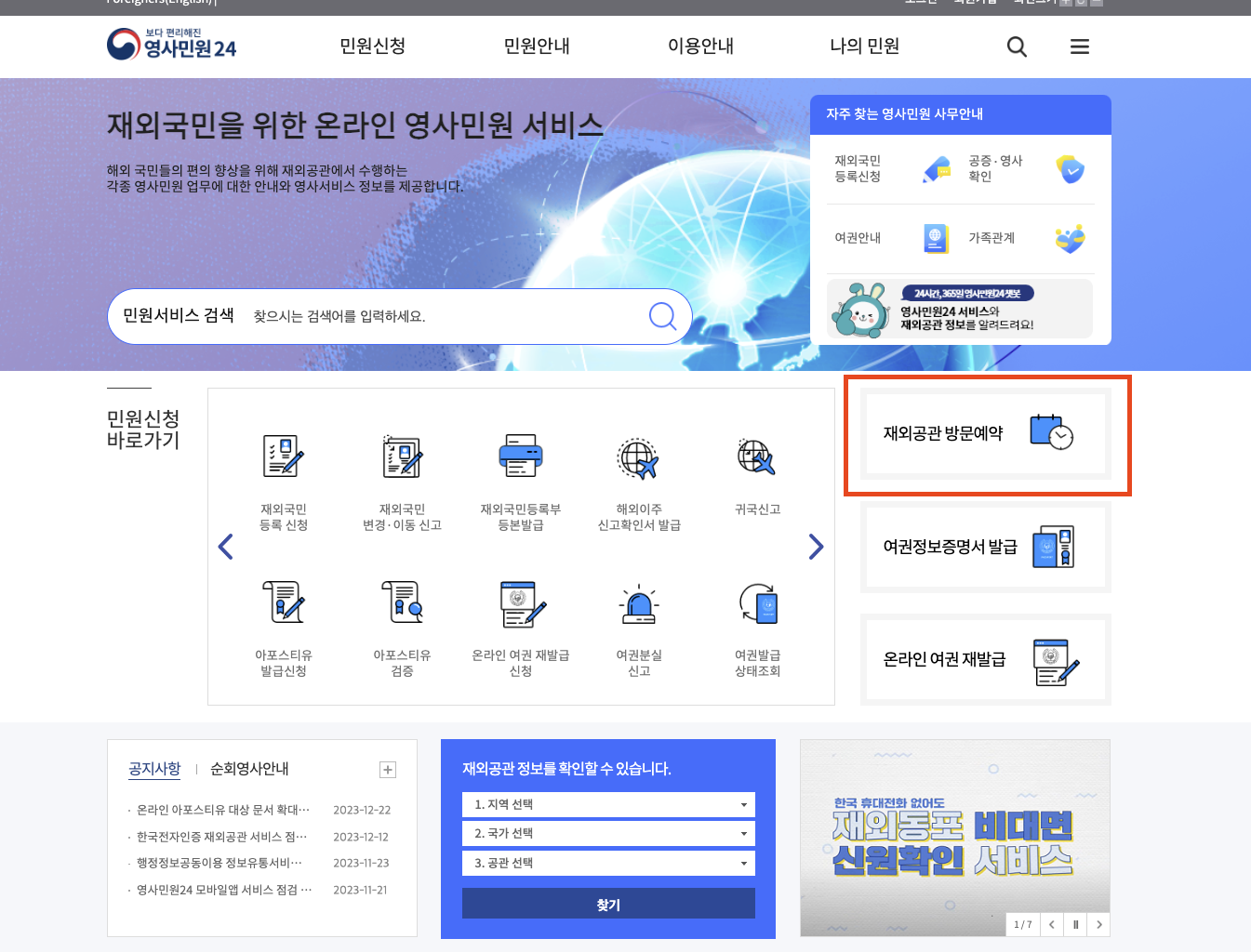 온라인 영사민원24 페이지